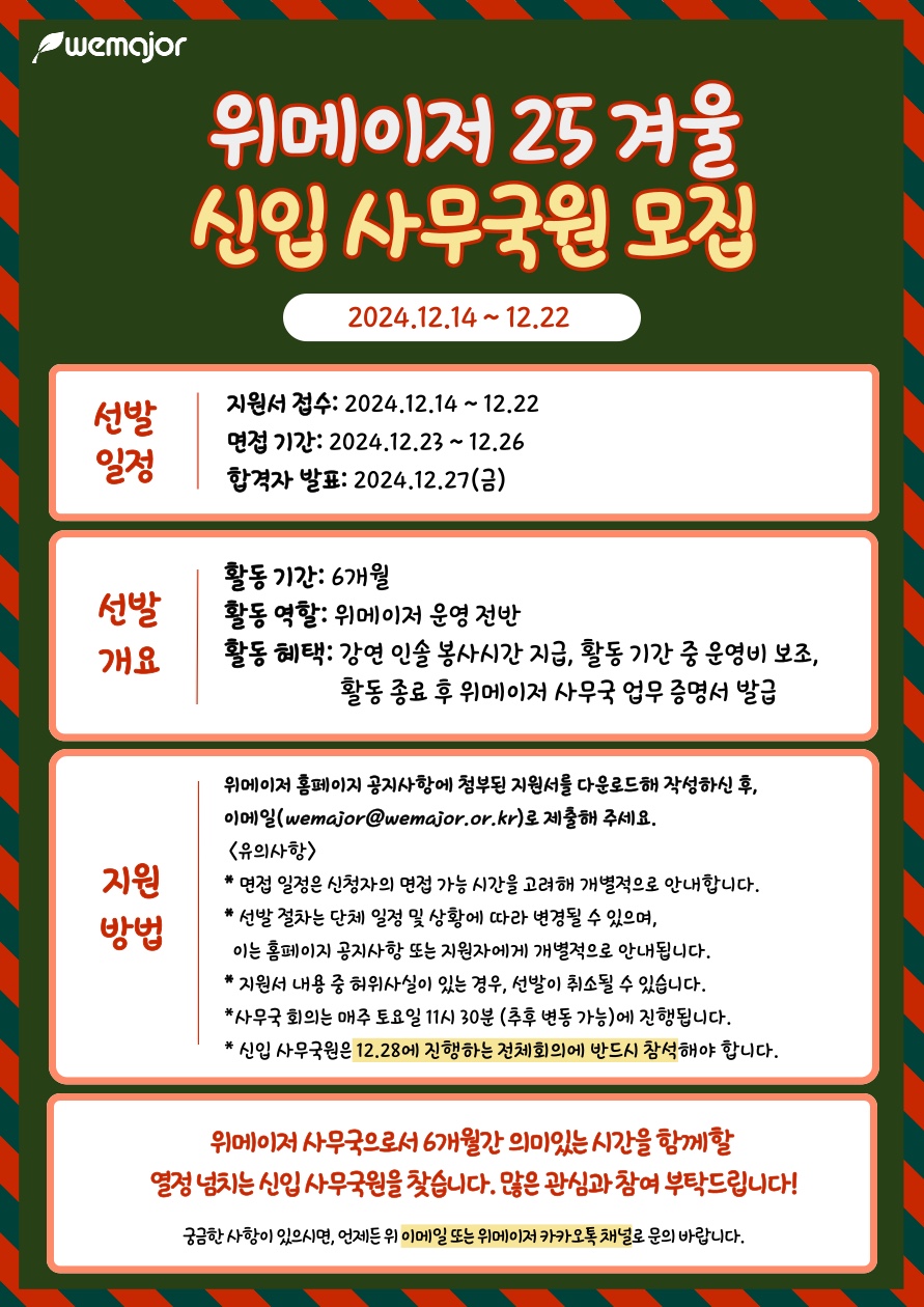 위메이저에서 신입 사무국원들을 모집합니다.