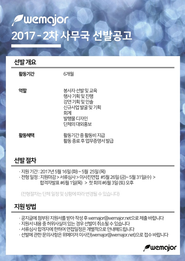 [봉사자 모집] 2017년_여름기수 리크루팅