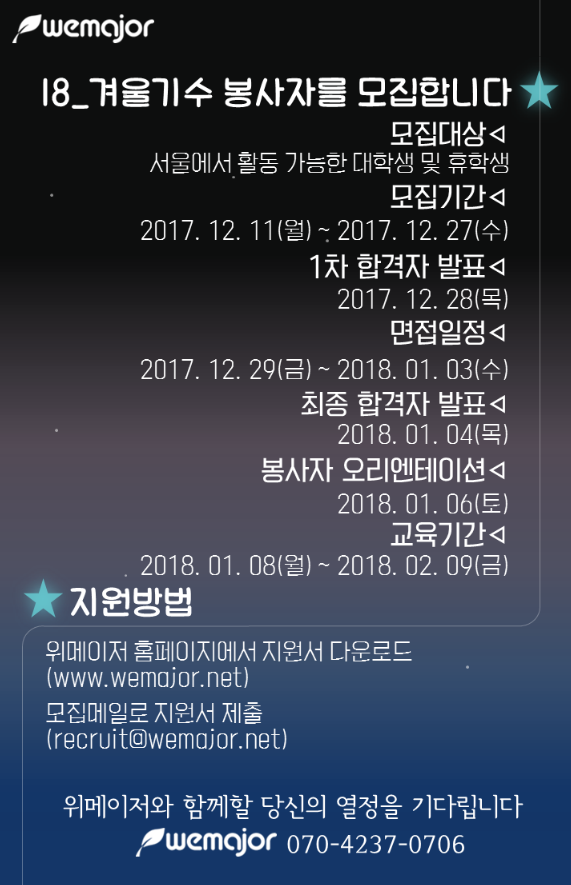[봉사자 모집] 2018년_겨울기수 리크루팅