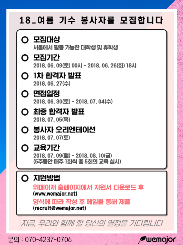 [봉사자 모집] 2018년_여름기수 리크루팅