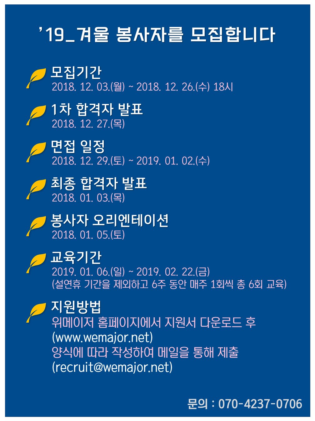 [봉사자 모집] 2019년_겨울기수 리크루팅 (완료)