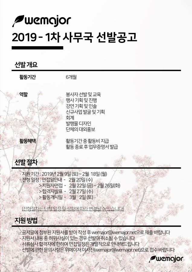 [봉사자 모집] 2019년_봄기수 리크루팅 (완료)