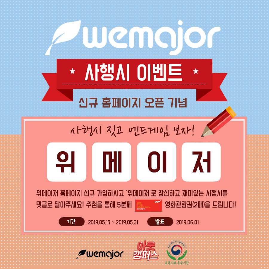 위-위메이저로 사행시 지으면 영화표 준다던데?