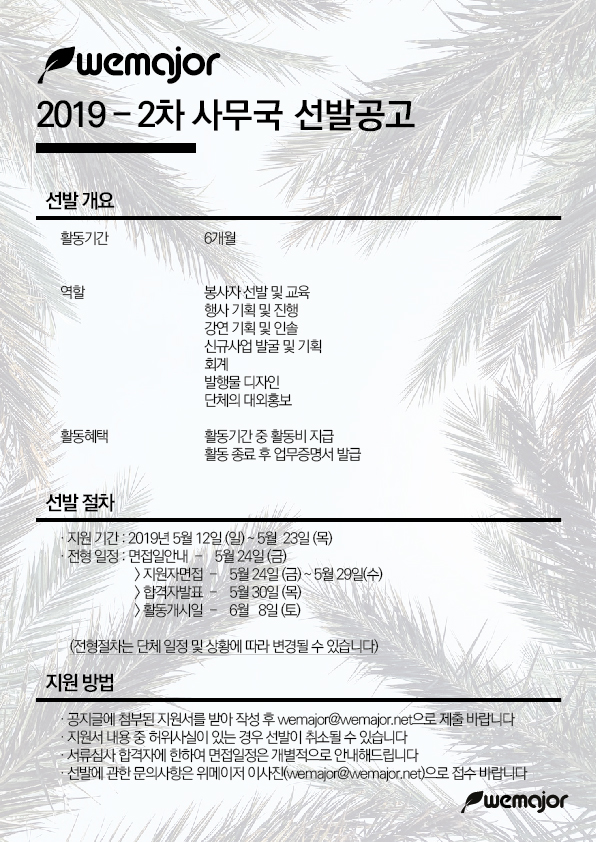 [봉사자 모집] 2019년_여름기수 리크루팅 (완료)