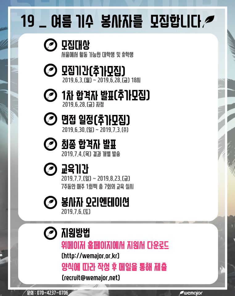 [봉사자 모집] 2019년_여름기수 리크루팅 (완료)