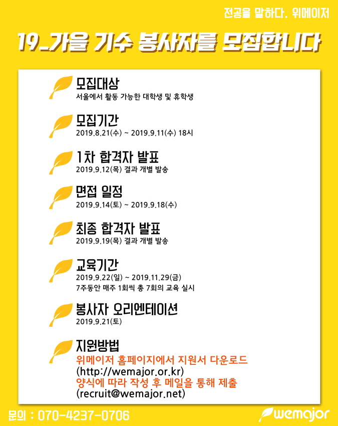 [봉사자 모집] 2019년_가을기수 리크루팅 (완료)