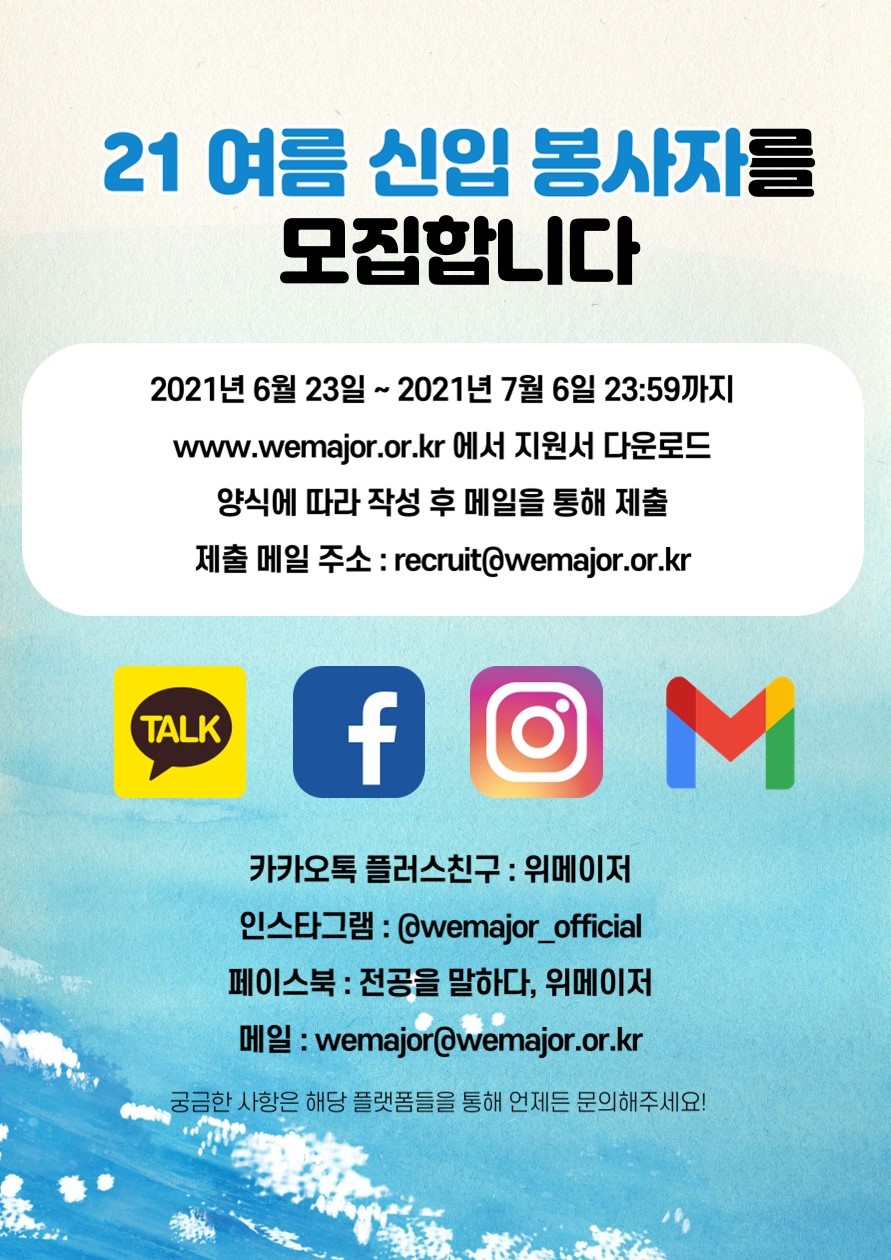 [봉사자 모집] 2021년_여름기수 리쿠르팅 (완료)