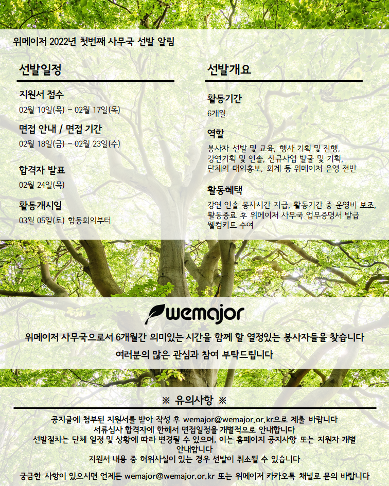[봉사자 모집] 2022년_ 봄기수 리쿠르팅 (완료)
