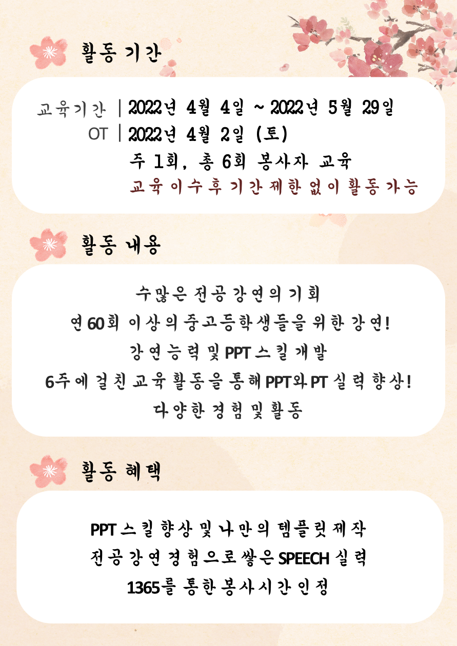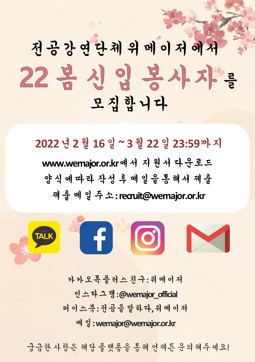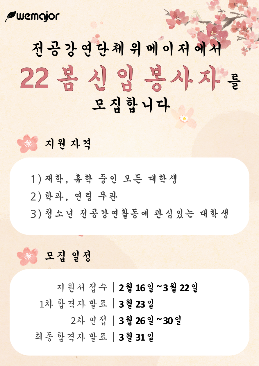 [봉사자 모집] 2022년_ 봄기수 리쿠르팅 (완료)