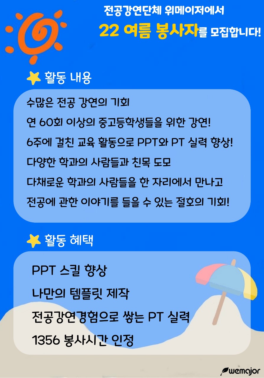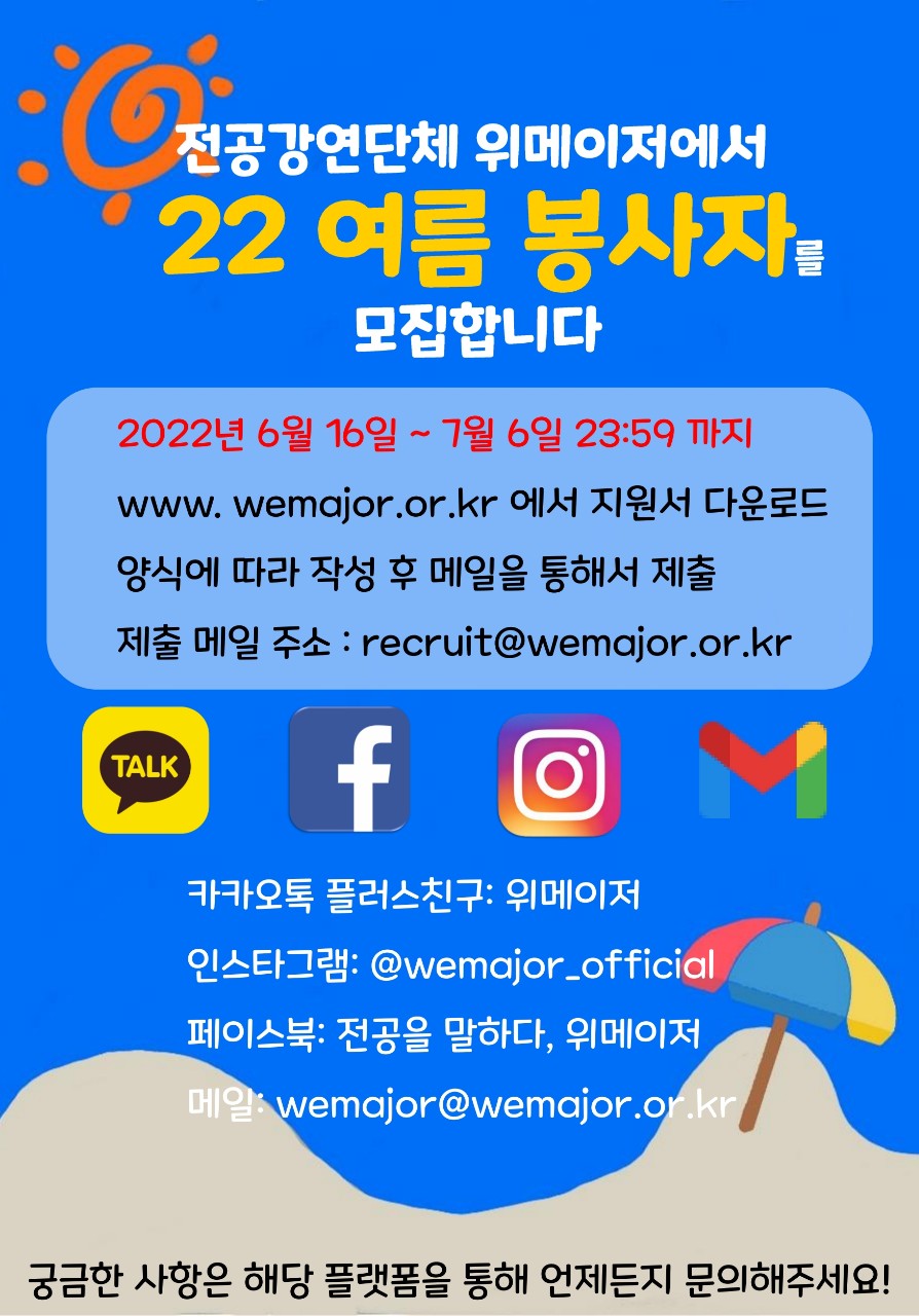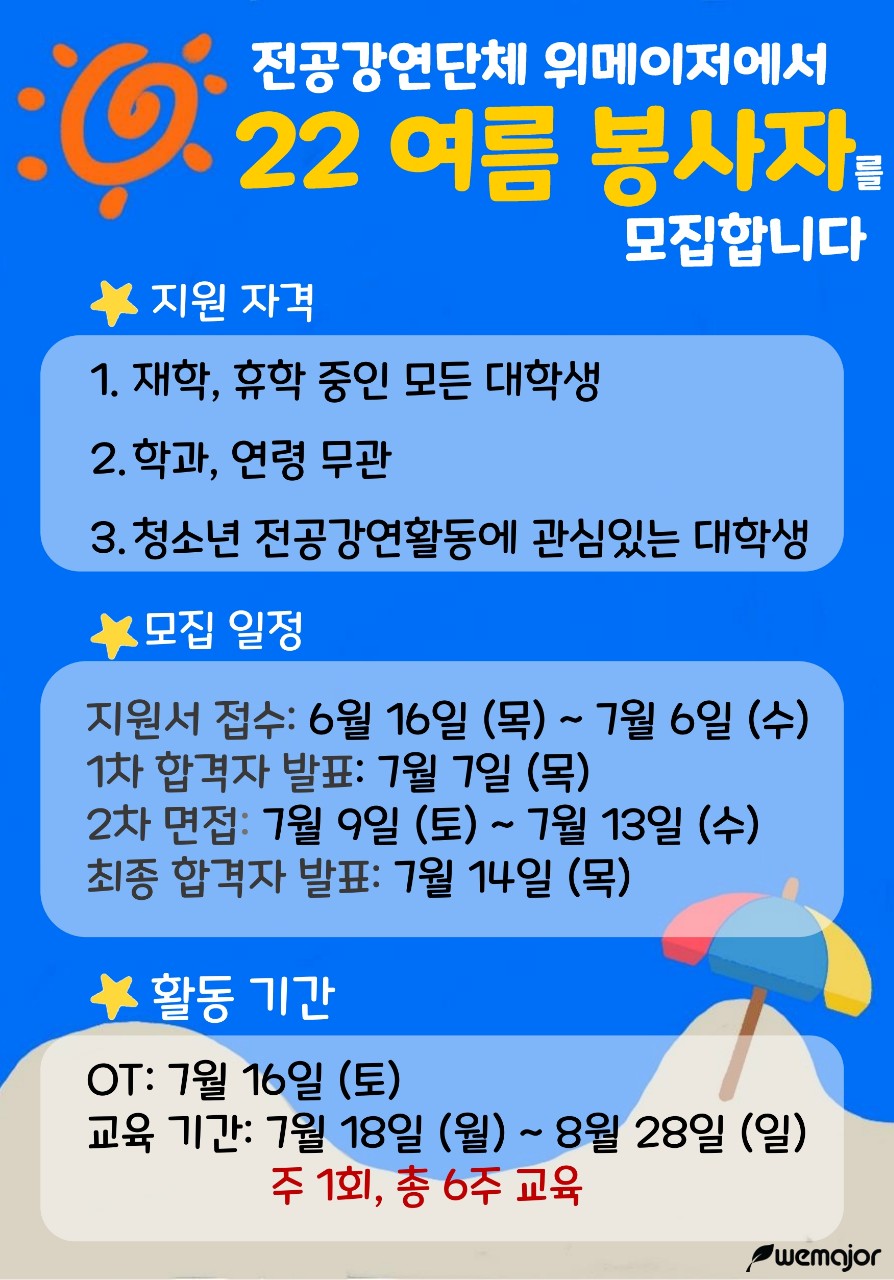 [봉사자 모집] 2022년_ 여름기수 리쿠르팅 (완료)