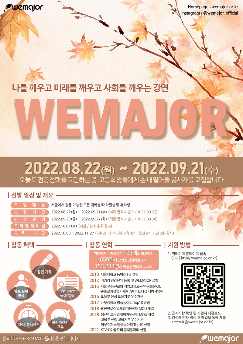 [봉사자 모집] 2022년_ 가을기수 리쿠르팅 (완료)