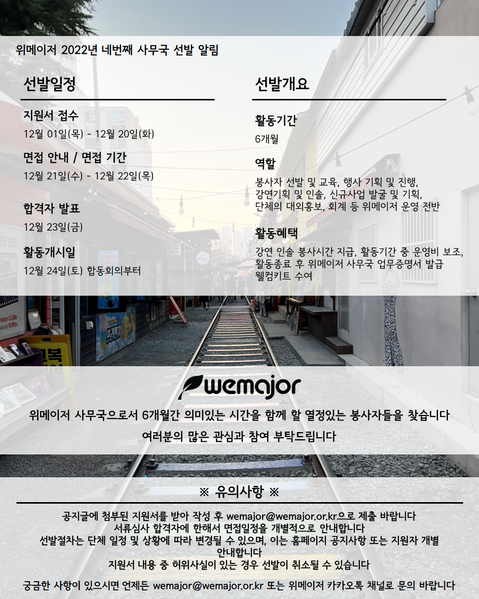 [봉사자 모집] 2022년_ 가을기수 리쿠르팅 (완료)