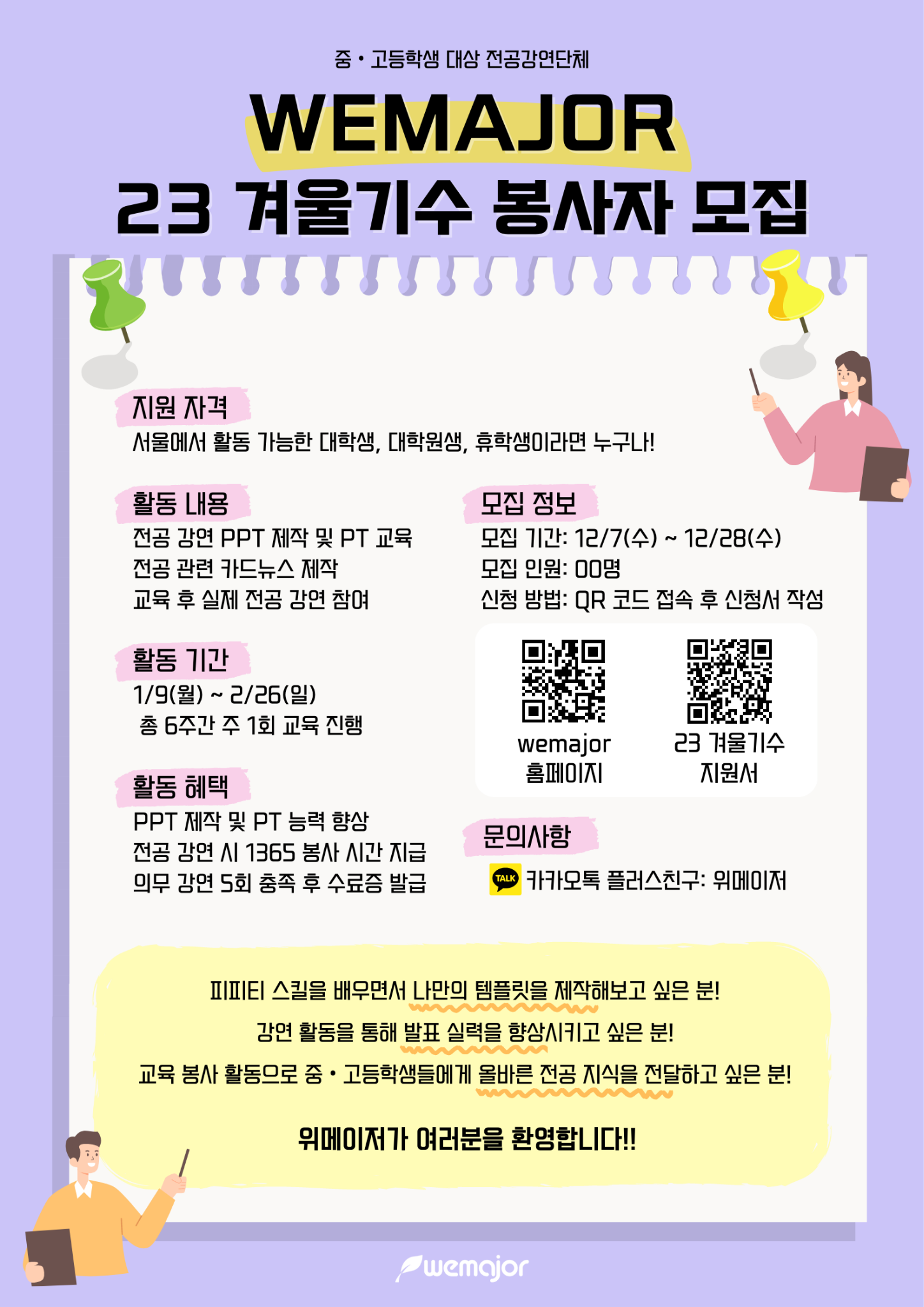 ◎ 제출 후 확인 메일이 발송 되오니, 미 발송 시 카카오톡 채널(위메이저)을 통해 문의 부탁드립니다.
